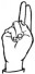На ћирилици написано БОЖИДАР ЈОВАНЧЕВИЋ састоји се из 17 слова [?]. Исписано ћириличном једноручном азбуком за глувонеме: